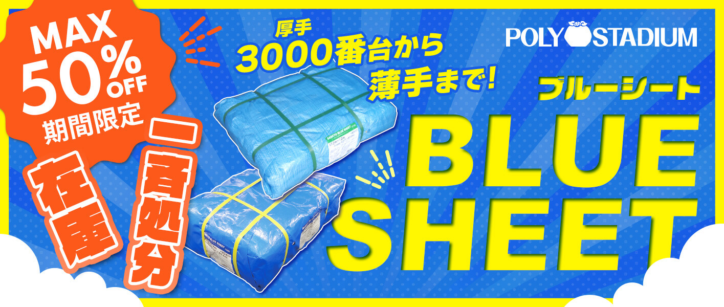 本日はポリスタジアムで開催中の【ブルーシート最大半額!在庫処分セール!】のお知らせです。