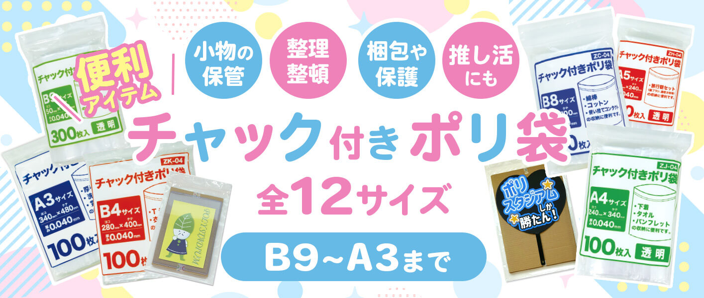 チャック付きポリ袋をお探しの方は是非「ポリスタジアム」をご利用いただけますと幸いでございます。