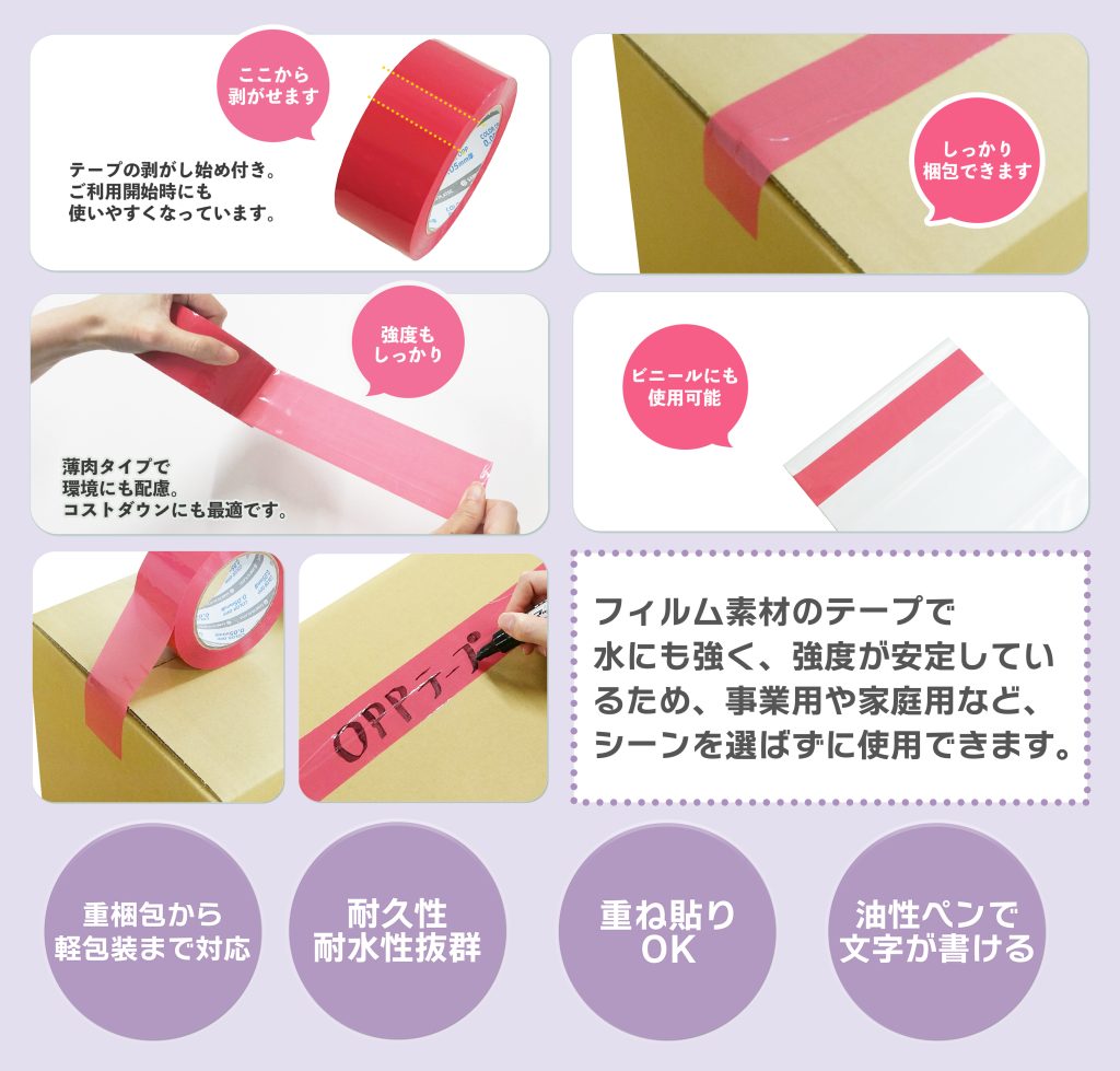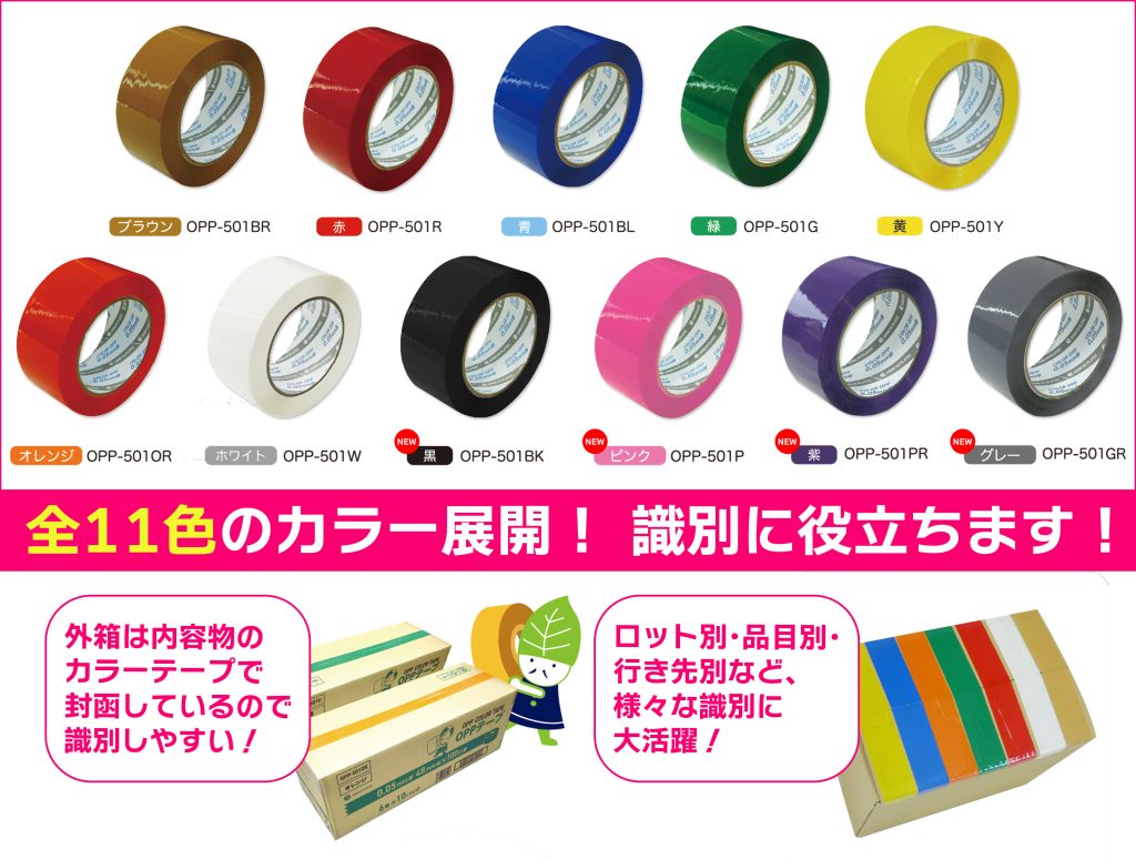 透明アクリル系OPPテープがありますが、50μにはカラーOPPテープがあります!