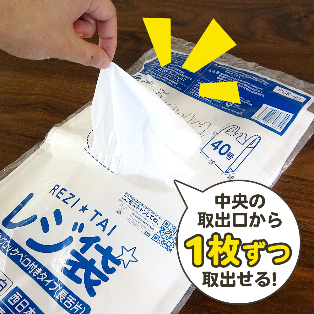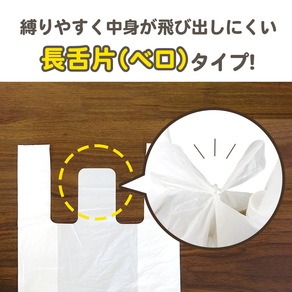 こちらのレジ袋は、「長舌片(ベロ)タイプ」になっているので縛ることが可能です!
